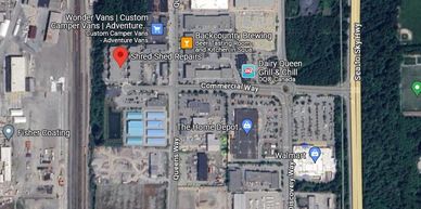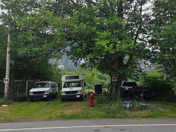 Shred Van HQ is located on Pemberton Ave next to the water. The vans are parked under the tree canopy. Best location if you're staying DT Squamish. 9am departure time only